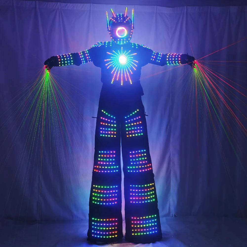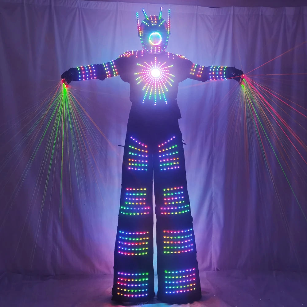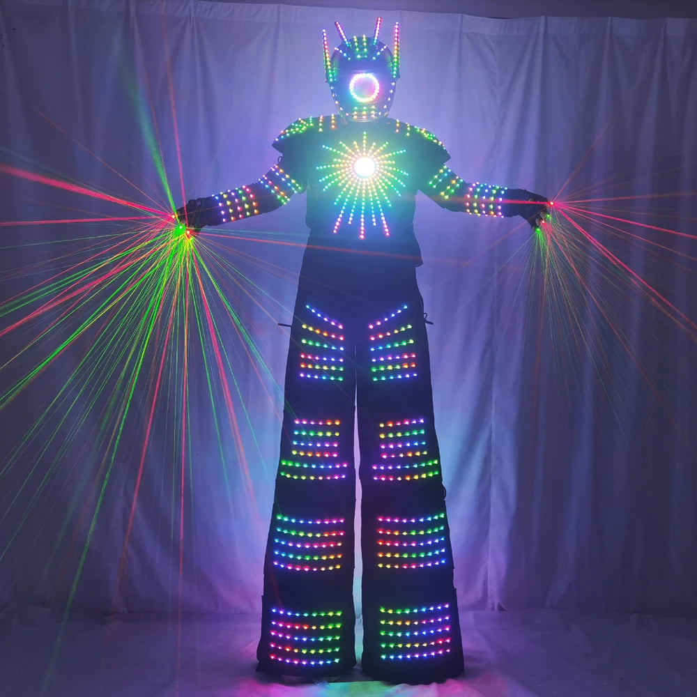Traje de Robot LED Pixel, zancos iluminados, disfraz de caminante, David Guetta, ropa luminosa de Color de baile, guantes láser, pistola de CO2, máquina de chorro