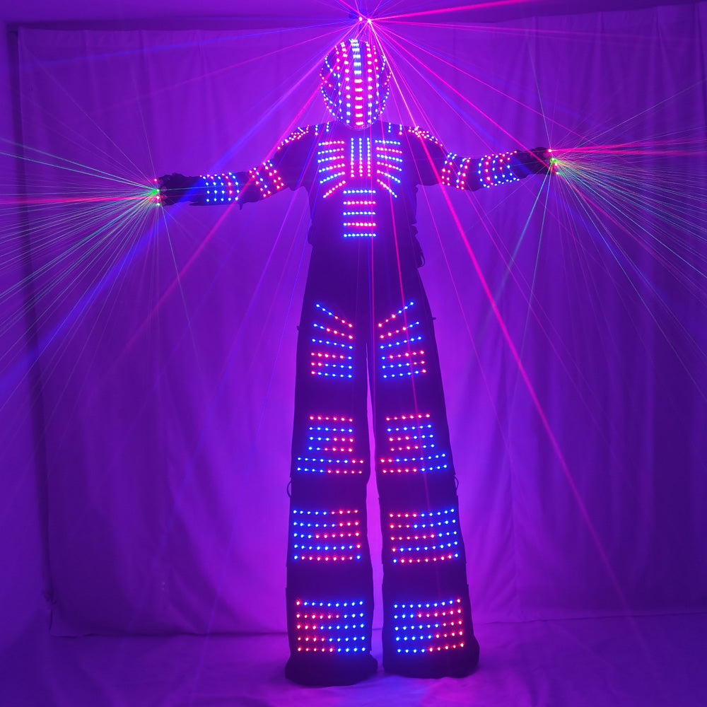Full Color Pixel LED Robot Costume David Guetta LED Robot Suit Laser Robot Jacket Ranger Stilts Clothes Luminous Costumes